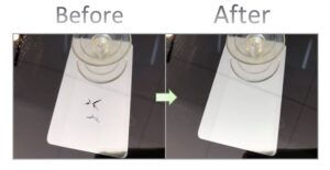 完全な新品同様とまではいきませんが、運転席から見ても気にならないレベルまで透明度が回復しています。